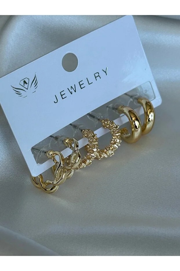 طقم أقراط حلقية منقوشة من لوز دي فيينتو مكون من 6 قطع للنساء