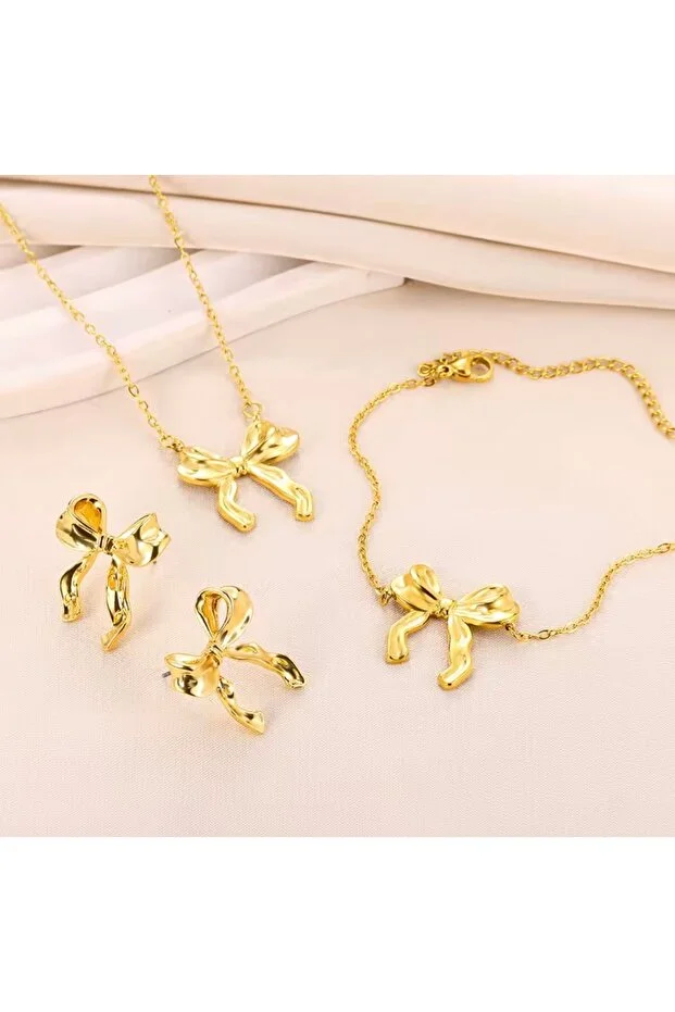 0 Review Of Product طقم أقراط وقلادة وسوار ذهبي للنساء من موناليساتوكا