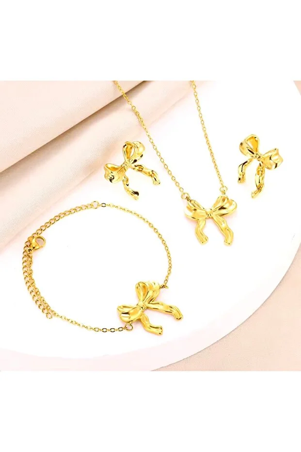 طقم أقراط وقلادة وسوار ذهبي للنساء من موناليساتوكا