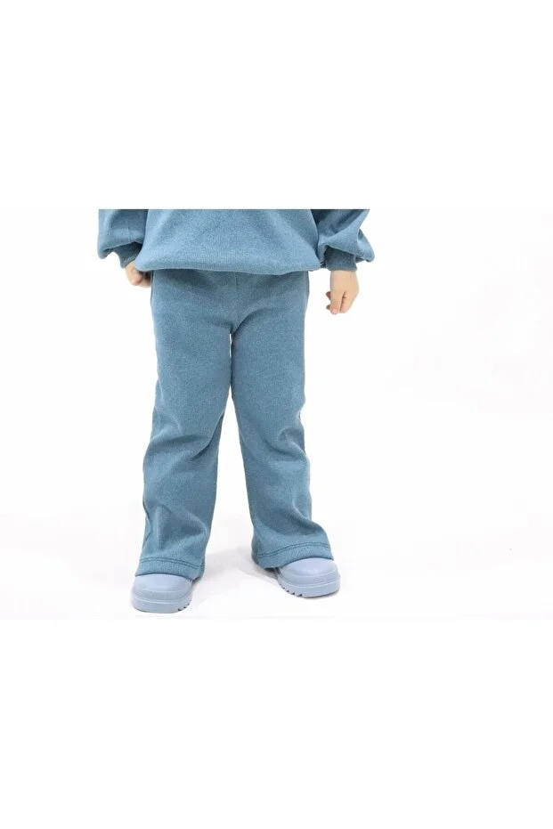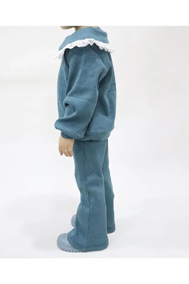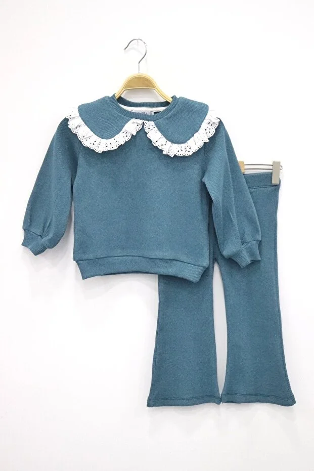 0 Review Of Product طقم بناتي من قطعتين، بنطال رياضي بياقة عتيقة مضلعة وبنطال واسع من الأسفل، لون بامبكين