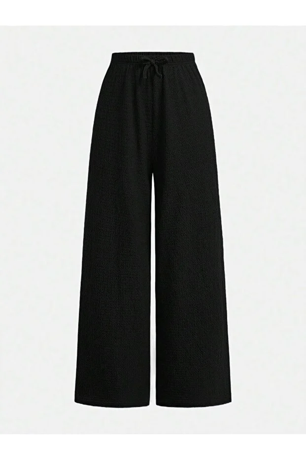 0 Review Of Product طقم بنطلون واسع الساق وواسع الخصر باللون الأسود من ميرين، يناسب أسلوبك.