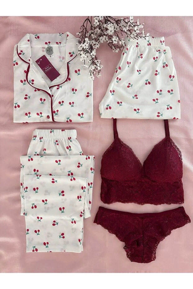 طقم بيجامات وملابس داخلية من القطن المشط من MH Moony Homewears، مكون من 5 قطع، بلون الكرز، من Dowry