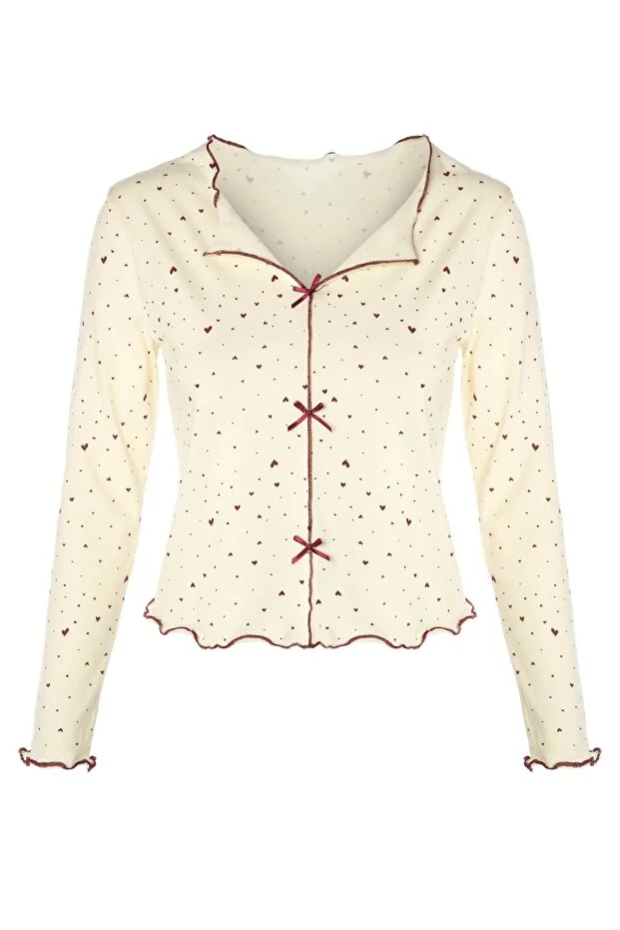 طقم بيجاما أطفال من كوزا لانجري، مصنوع من القطن الناعم بنقشة زهور، مزين بتفاصيل متداخلة وعقدة، بأكمام طويلة.