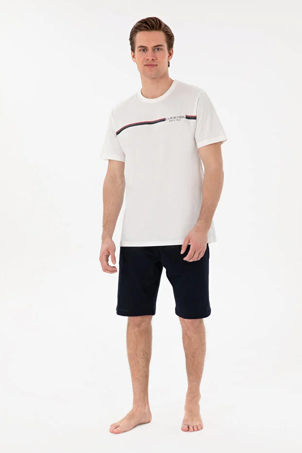 طقم بيجاما رجالي أبيض برقبة دائرية من يو إس بولو أسوسييشن 50309174-VR013