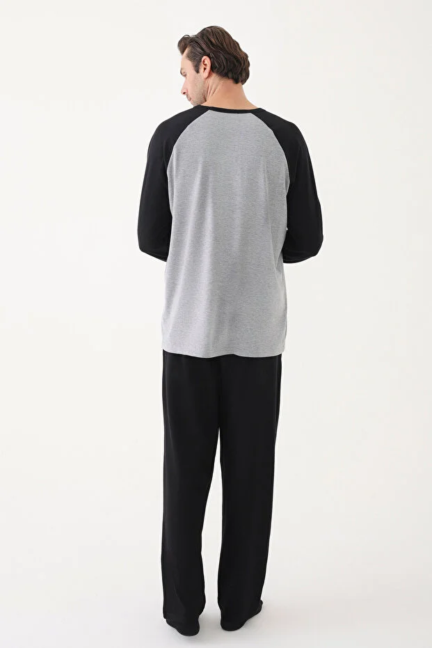 طقم بيجاما رجالي من كوزا، مصنوع من القطن، بأكمام طويلة وجيوب