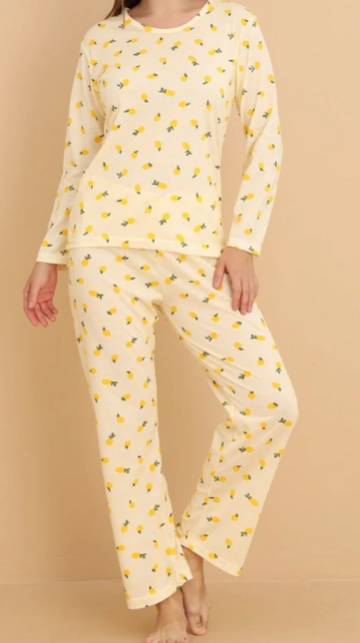 طقم بيجاما قطني بأكمام طويلة بنقشة ليمون ستيلابينو - أصفر