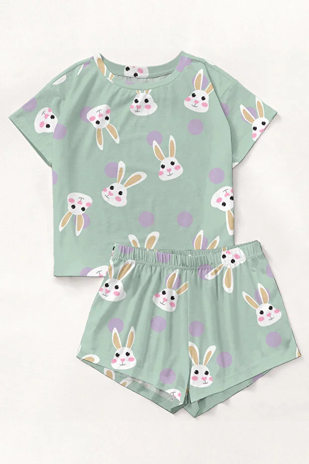 طقم بيجاما منزلي وردي اللون، شورت بأكمام قصيرة، من Rabbit1، فائق النعومة، أساسي فاخر
