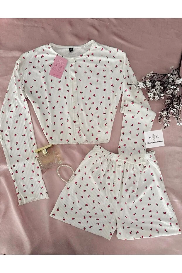 طقم بيجاما من إم إتش موني هوم ويرز بتصميم سهم، يتكون من توب قصير وشورت وبنطال