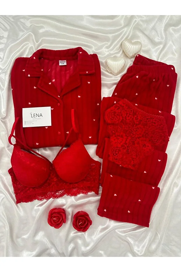 0 Review Of Product طقم بيجاما من الصوف بأزرار ونقشة قلوب من لينا هوم ويرز ريد دريمز