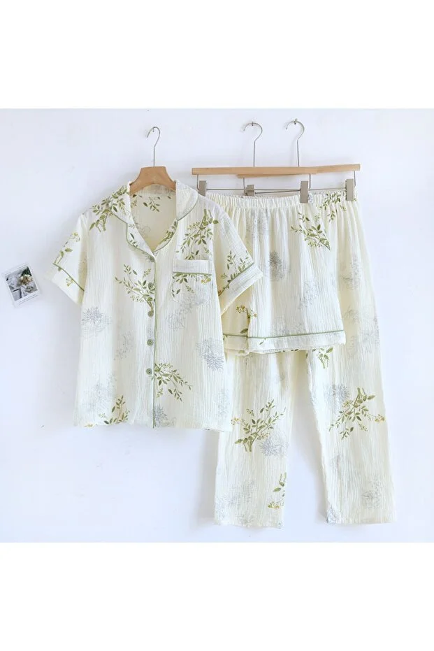 طقم بيجاما من قماش الموسلين القطني العضوي العالمي (3 قطع)