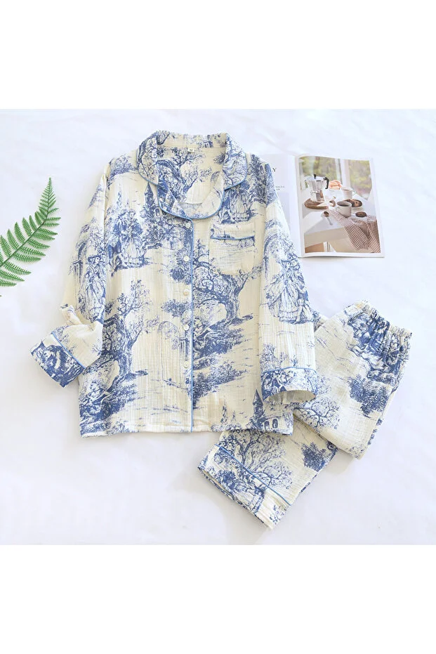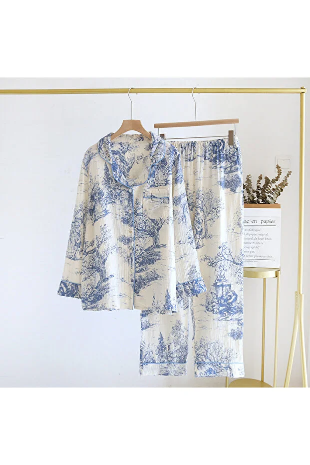 طقم بيجاما من قماش الموسلين القطني العضوي العالمي
