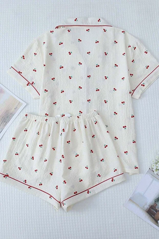 طقم بيجاما ميري سي الخاص من قماش محبوك مطبوع بأكمام قصيرة وشورت