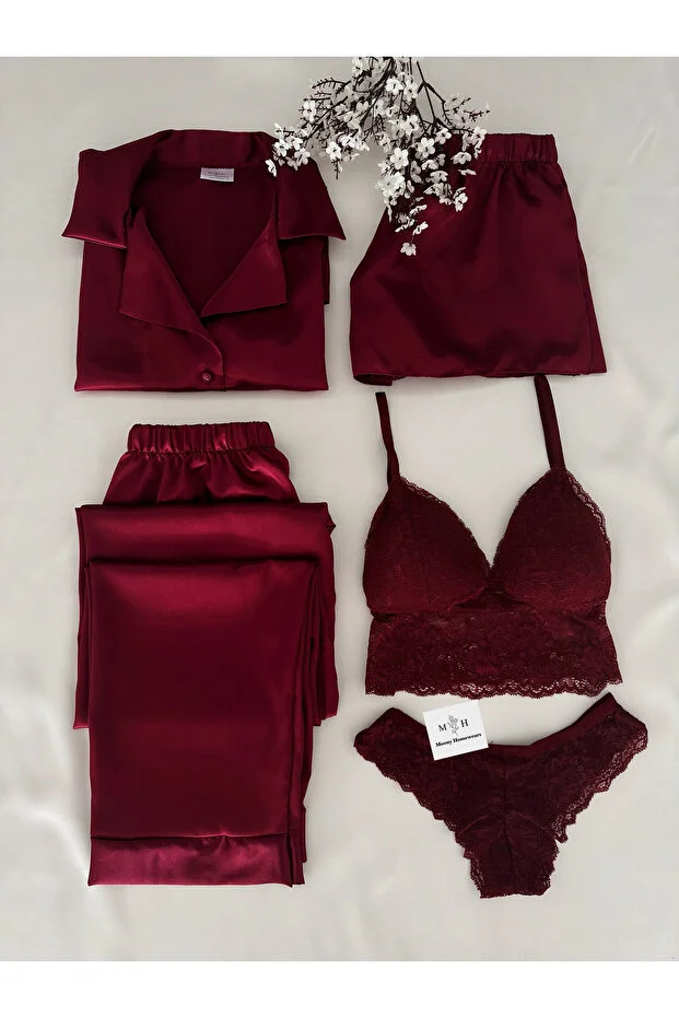 طقم بيجامة داخلية من الساتان كراون سونيا من إم إتش مونى هوم ويرز، مكون من 5 قطع