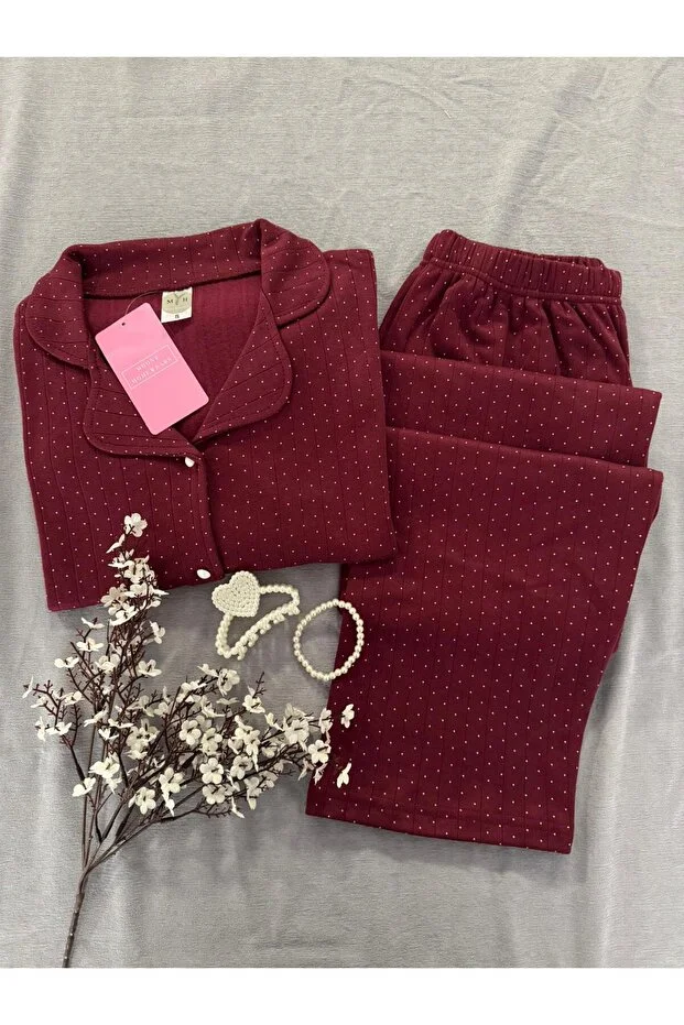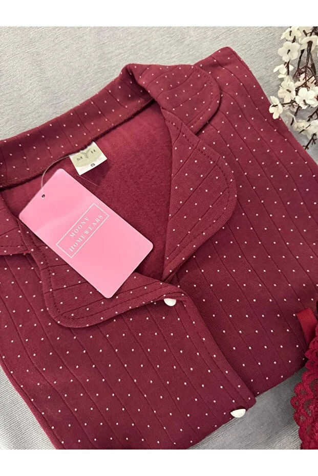 طقم بيجامة شتوي حراري من قماش الميرلين من MH Moony Homewears Nokia Burgundy