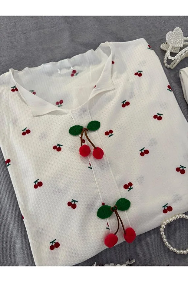 طقم بيجامة كاميسول فاخر من قطعتين من MH Moony Homewears مع تفاصيل كرز معلقة