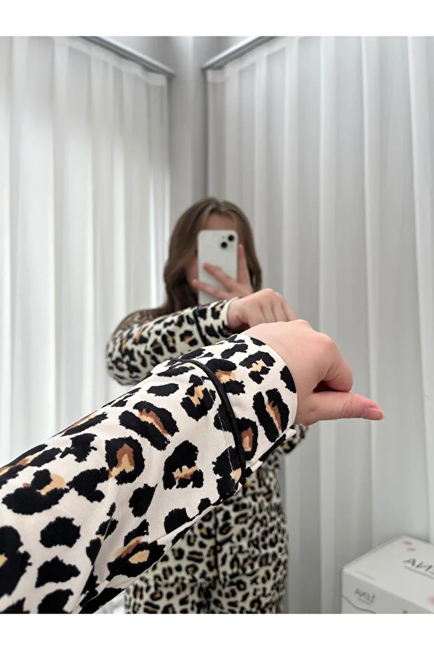 طقم بيجامة ميلانو بأكمام طويلة وطبعة جلد النمر من لينا هوم ويرز