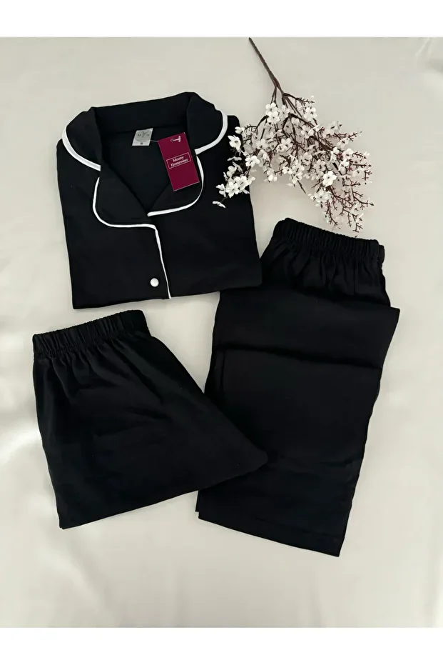 0 Review Of Product طقم بيجامة ناعمة سوداء من MH Moony Homewears، مكون من 3 قطع