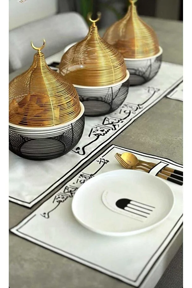 طقم تقديم الطعام من هيفا هوم، مزين بنقش "شهر مبارك" باللغة العربية، يكفي لـ 6 أشخاص (13 قطعة).