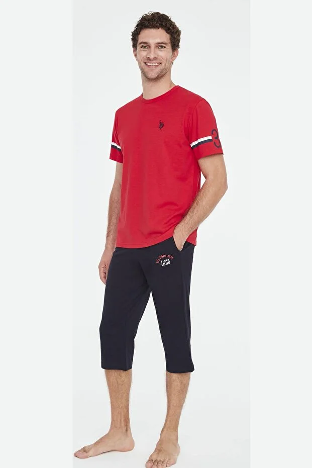 طقم تيشيرت صيفي مطرز برقبة دائرية وبنطال كابري من يو إس بولو أسوسييشن مع جيوب