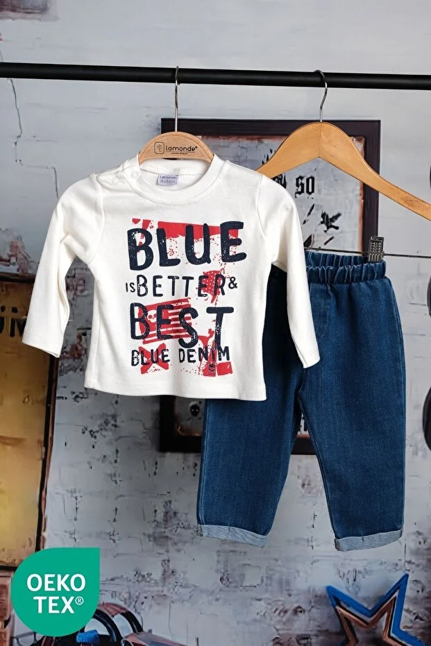 طقم جاكيت لاموند، بنطلون جينز، سويت شيرت، 3 قطع، قطن 100%، مناسب للأطفال من عمر 9 إلى 12 شهرًا.