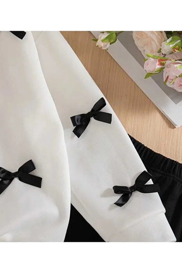 طقم جوارب داخلية وسفلية مفصلة بفيونكة فكرية للبنات