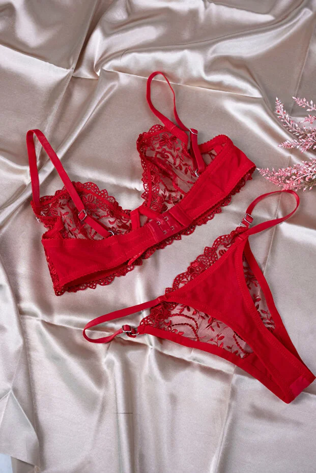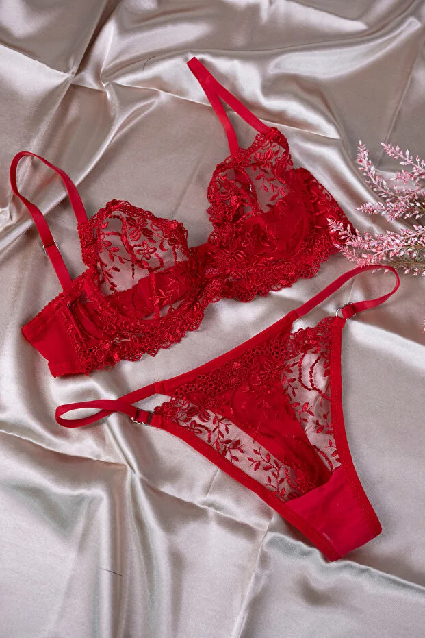 0 Review Of Product طقم حمالة صدر دانتيل أحمر (حمالة صدر وسروال داخلي)