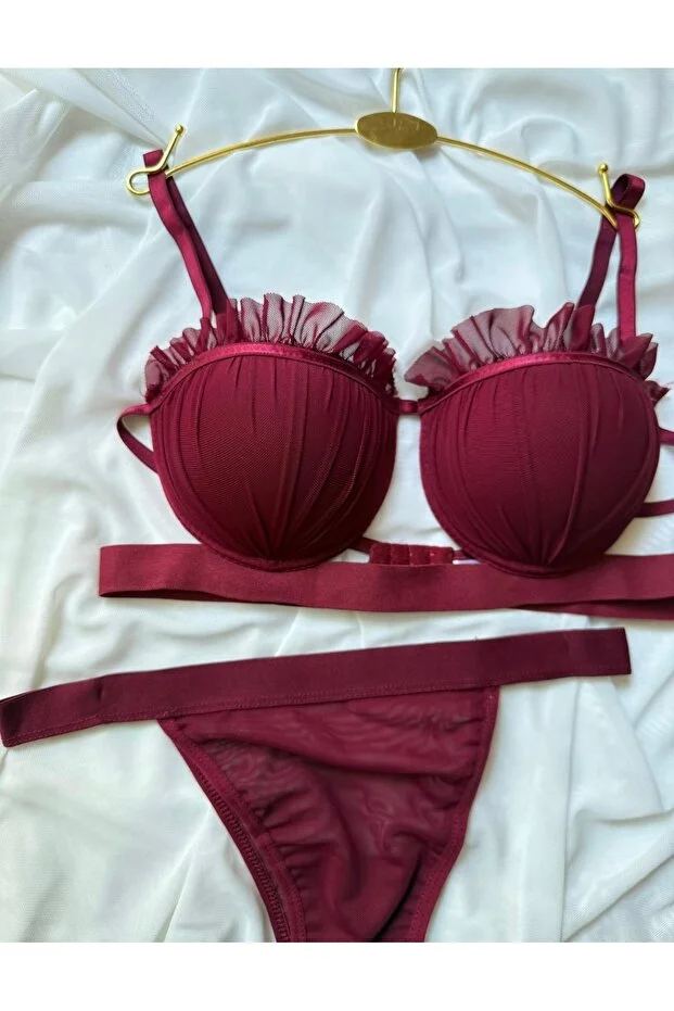 طقم حمالة صدر وسروال داخلي من الدانتيل من لوناري بورجوندي - ملابس داخلية نسائية
