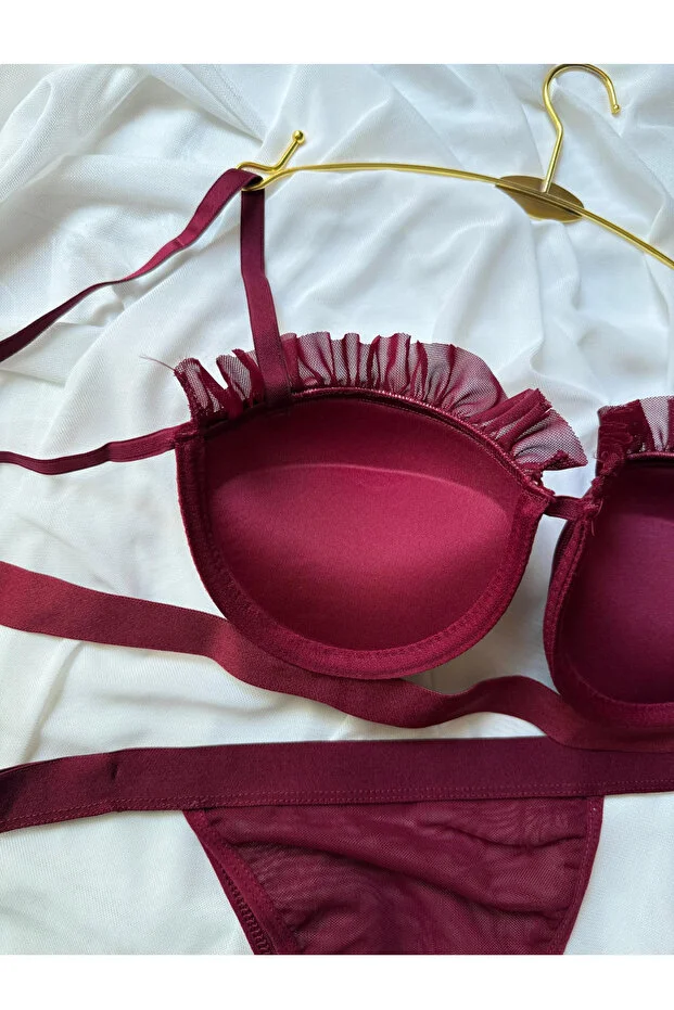 0 Review Of Product طقم حمالة صدر وسروال داخلي من الدانتيل من لوناري بورجوندي - ملابس داخلية نسائية