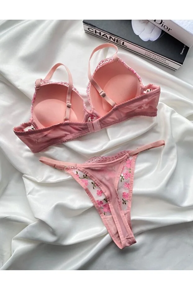 0 Review Of Product طقم حمالة صدر وسروال داخلي من الفضة المرآة المزخرفة بالزهور الزرقاء المقرمشة