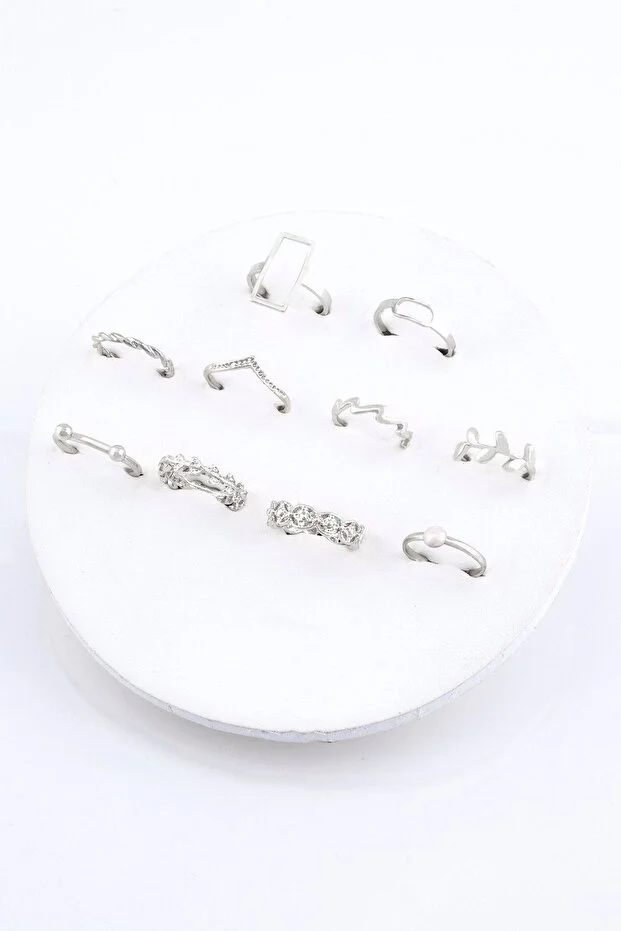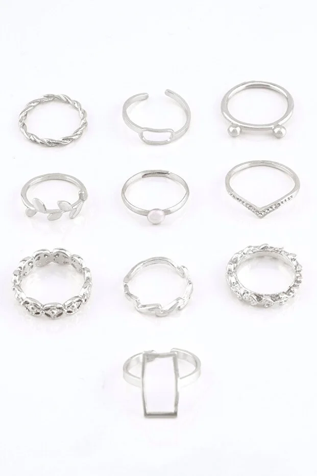 طقم خواتم من 10 قطع بتصميم اللؤلؤ وغصن الزيتون من سورتي أكسسواريز 023