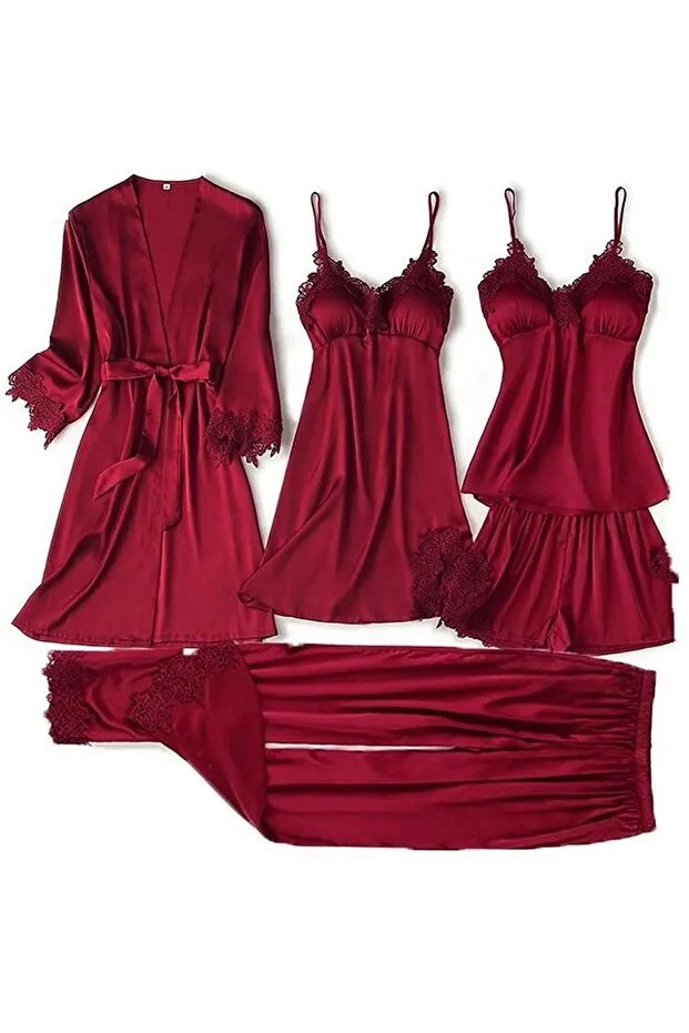 طقم زفاف من خمس قطع من الساتان العنابي من إم إتش موني هوم ويرز، معبأ في علبة