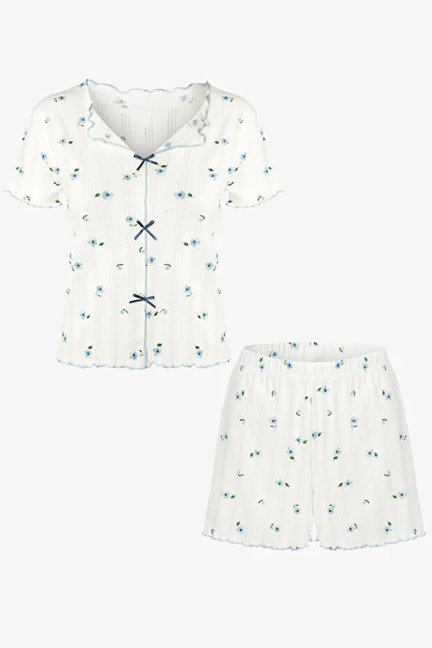 طقم شورت قصير الأكمام من كوزا لانجري، مزين بفيونكة ونقشة زهور.