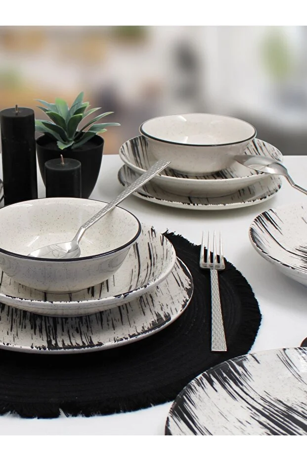 طقم عشاء أرنا بورسلين أنكا، 18 قطعة، لـ 6 أشخاص - شبك أسود منقوش