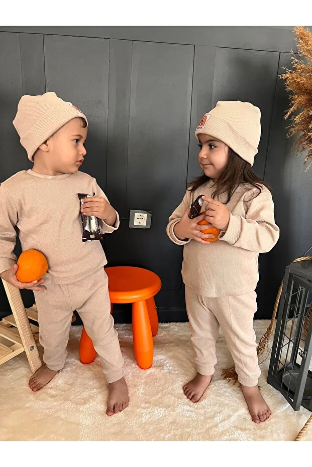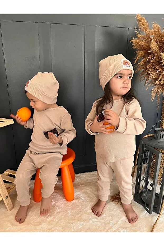 0 Review Of Product طقم قبعة بيني للأطفال من باهنور بيج، مكون من قطعة علوية وسفلية، مناسب للجنسين، بدلة رياضية مرنة للأطفال