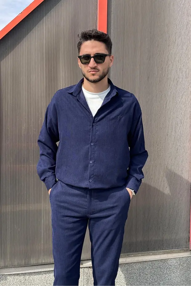 0 Review Of Product طقم قميص وبنطلون من Inpool للرجال، مخمل منسوج، قصة عادية، من Old Money Culture، G16-305