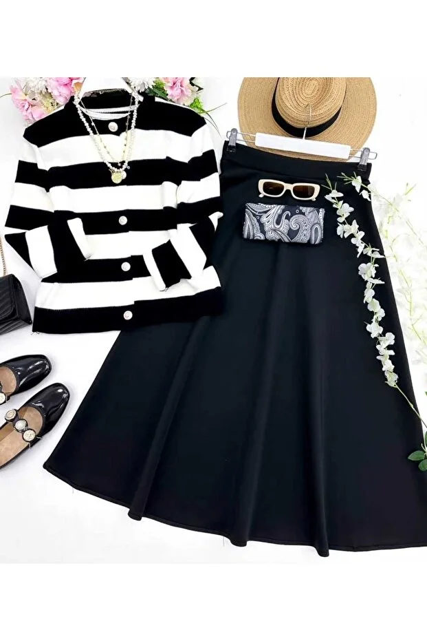 طقم كارديجان وتنورة نسائي من مودا فيدات، قطعتين