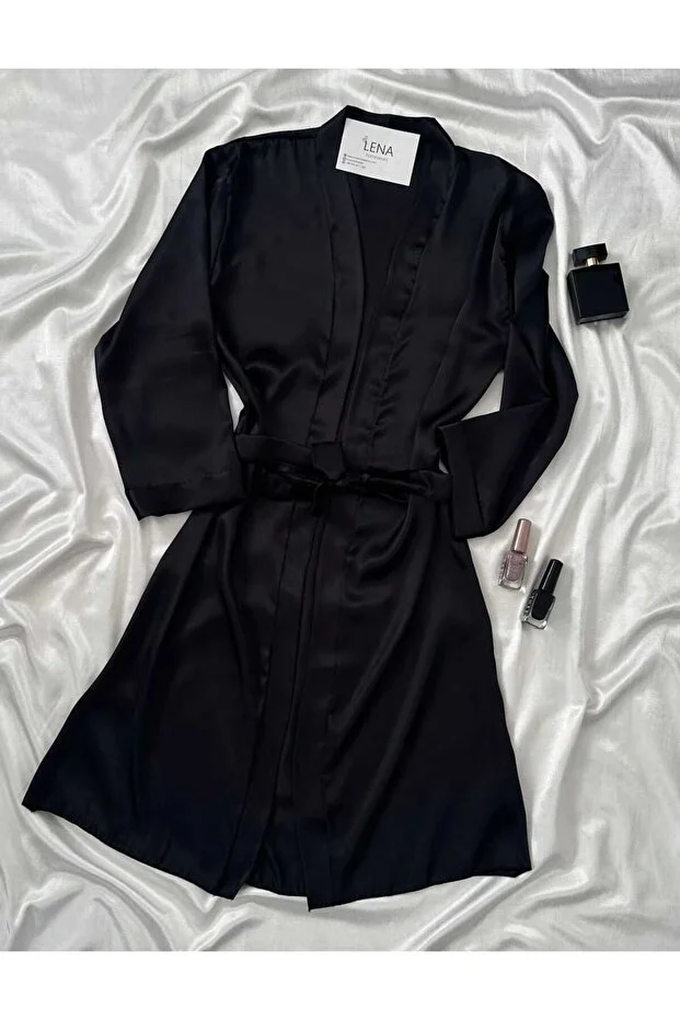 0 Review Of Product طقم لينا هوم ويرز من قطعتين من الساتان الأسود، يتكون من قميص نوم وروب