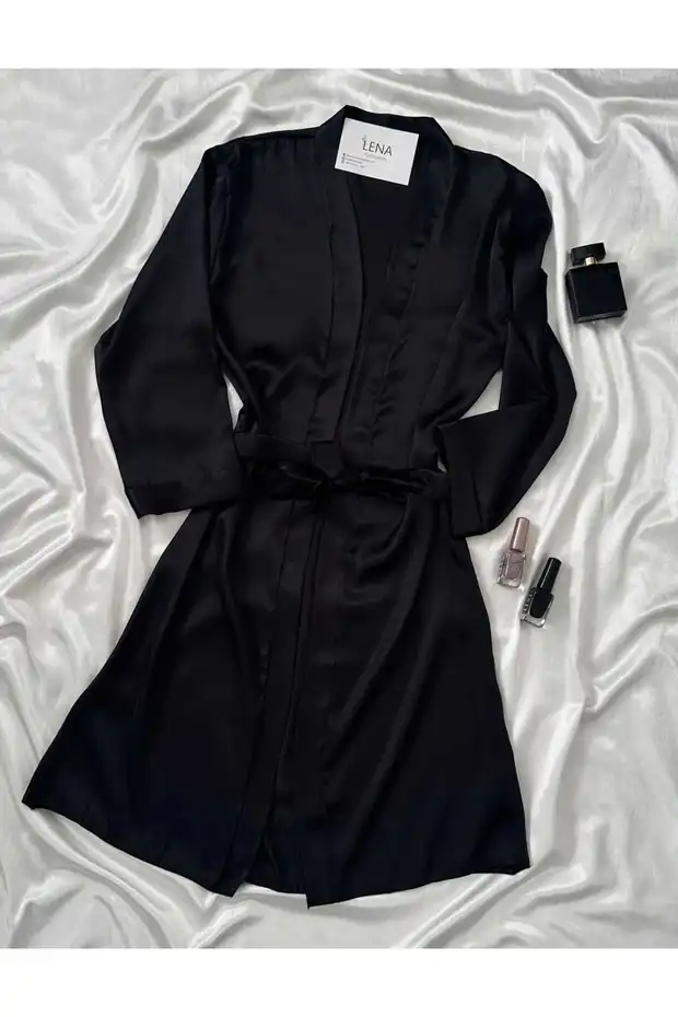 طقم لينا هوم ويرز من قميص نوم وروب حمام مزدوج من الساتان باللون الأسود