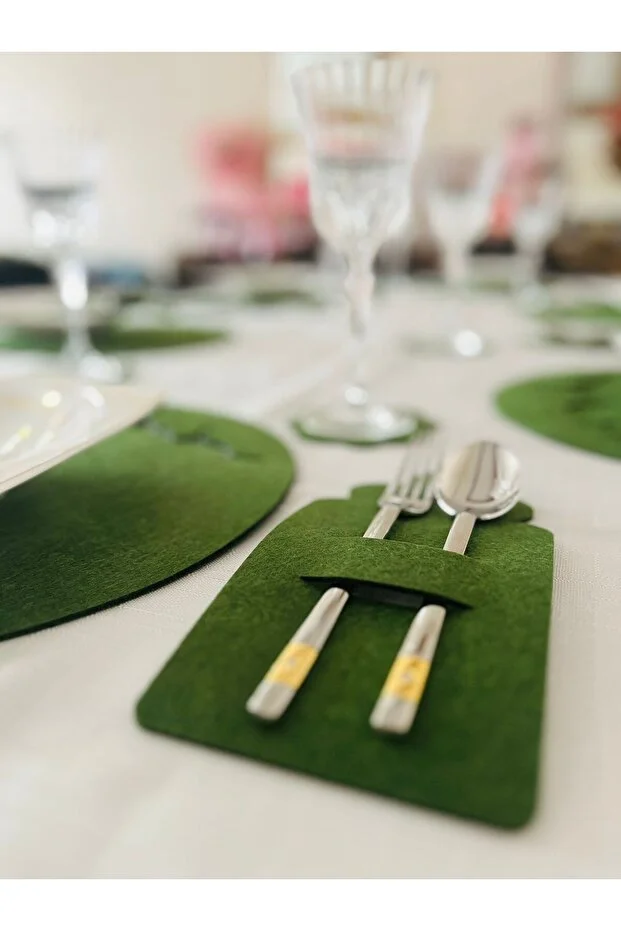 طقم مفارش طعام من كارتر إنوفيشن بطابع رمضاني، طقم عشاء رمضاني، طقم عشاء إفطار، طقم مفارش إفطار لأربعة أشخاص، أخضر (فقط)
