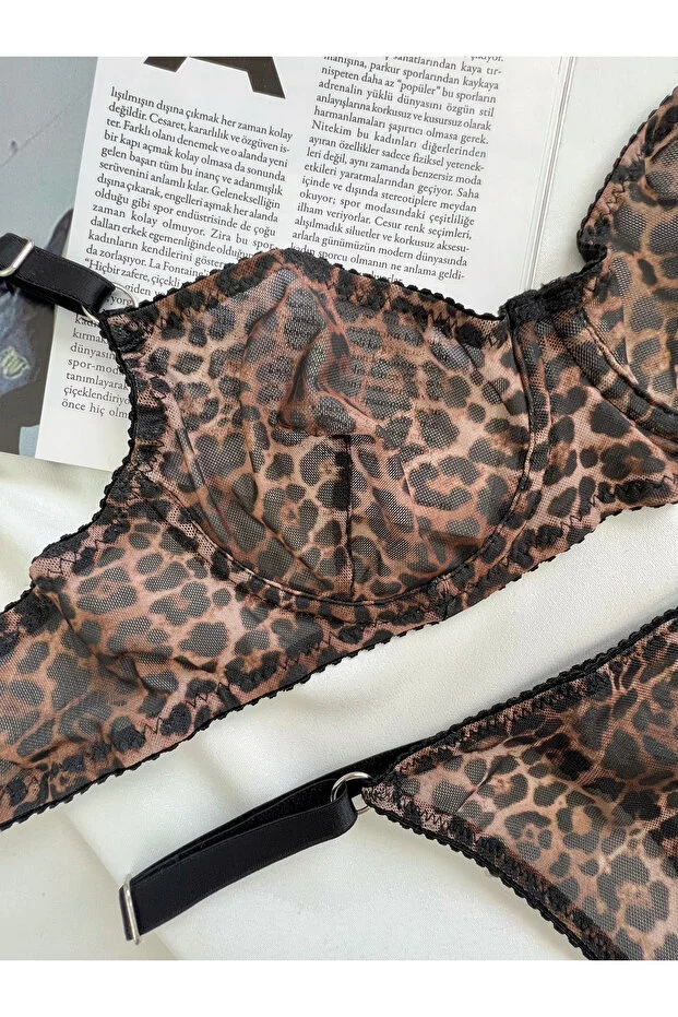 0 Review Of Product طقم ملابس داخلية بدون سلك من أريندا آيكون بطبعة جلد النمر من التول