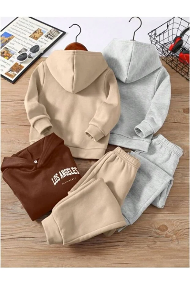 0 Review Of Product طقم ملابس رياضية بغطاء رأس مطبوع عليه صورة لوس أنجلوس للبنات/الأولاد من مونبول، مكون من 3 قطع