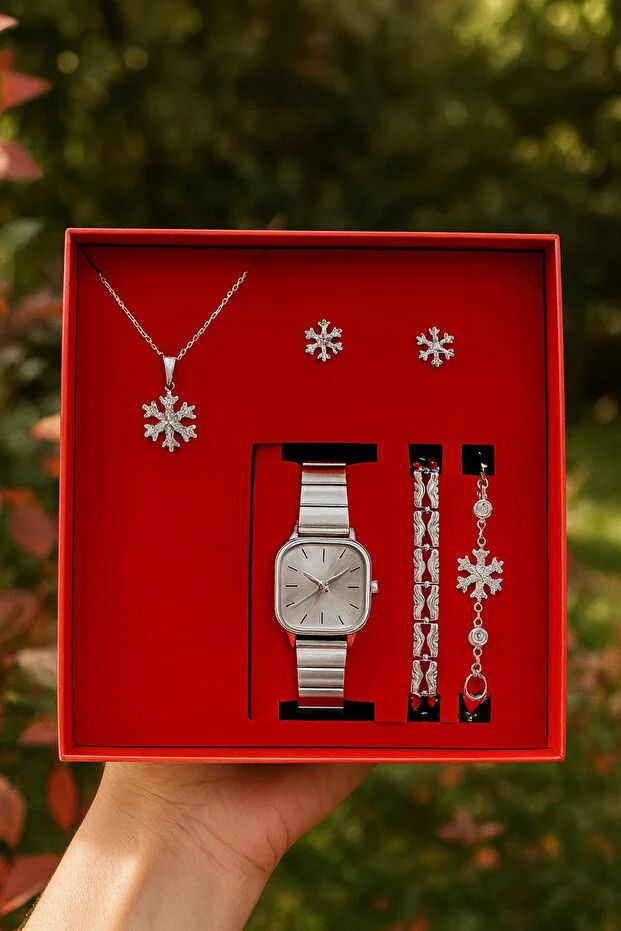 طقم هدايا من ساعة يد نسائية من أرزو بوتيك، سوار، قلادة، قرط