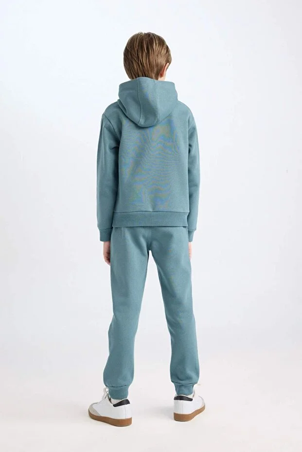 طقم Defacto للأولاد من قطعتين: سويت شيرت بغطاء رأس مطبوع وحزام خصر مطاطي وبنطال رياضي D3561A824WN