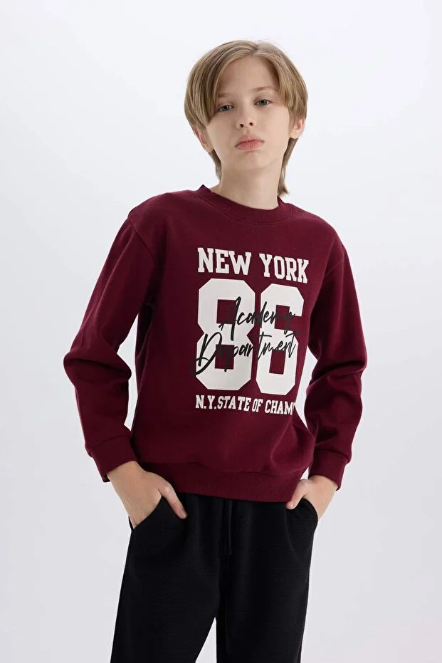 طقم Defacto للأولاد من قطعتين، سويت شيرت مطبوع بحزام خصر مطاطي وبنطال رياضي
