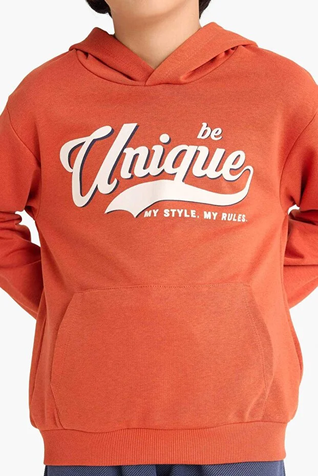 طقم Defacto للأولاد من قطعتين، سويت شيرت مطبوع بغطاء رأس وبنطال رياضي