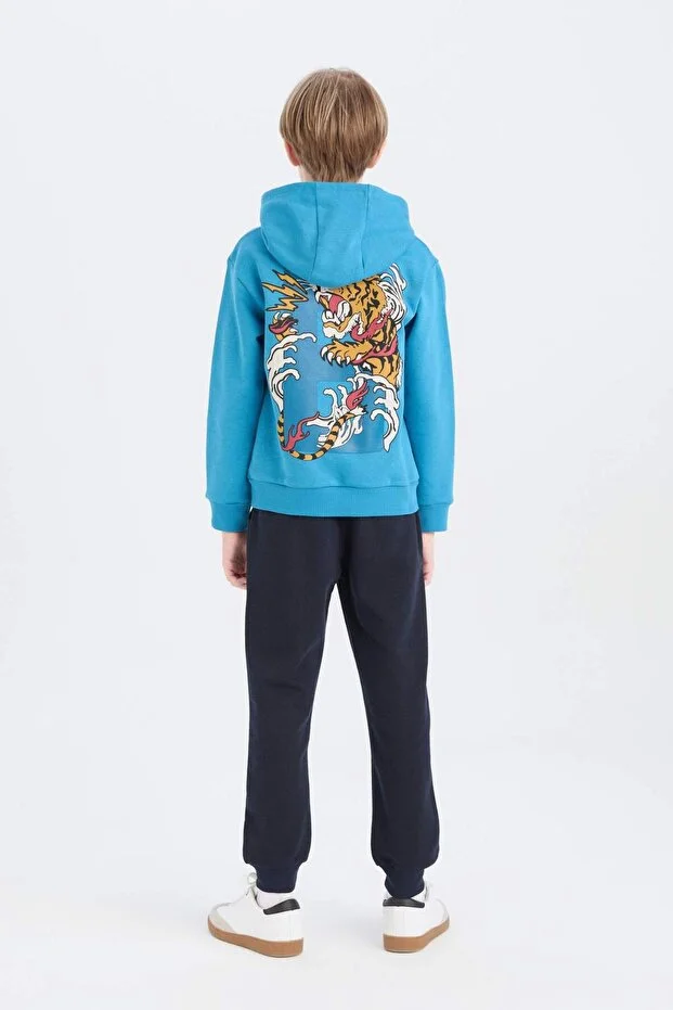 طقم Defacto من قطعتين من السويتر المطبوع وبنطال رياضي بخصر مطاطي للأولاد باللون الأزرق D6872A8/BE