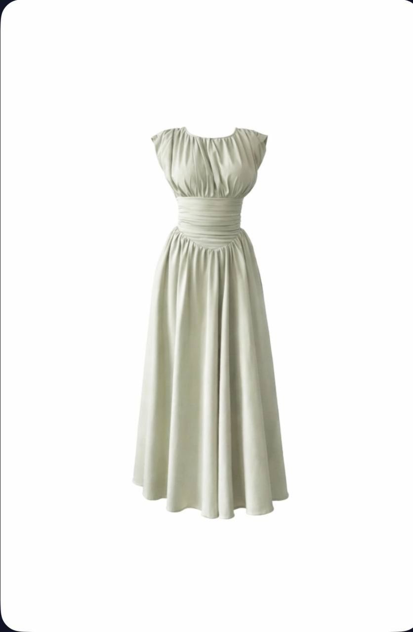 0 Review Of Product فستان طويل من قماش البوبلين من تصميم شيمز فاشن، بياقة مربعة وحزام، بلون الكاكي.