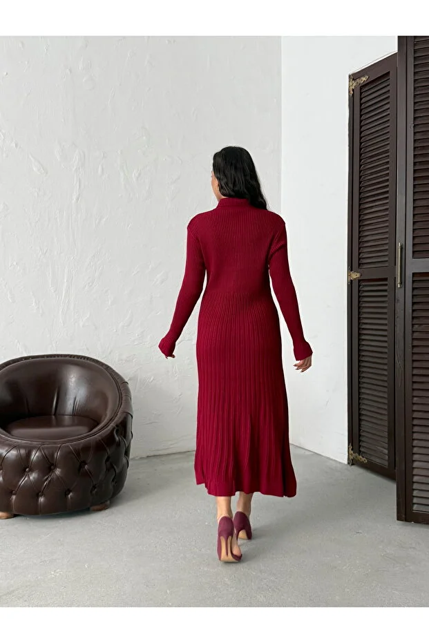 فستان قميص نسائي أنيق طويل محبوك بأزرار باللون العنابي من BEJNAفستان قميص نسائي أنيق طويل محبوك بأزرار باللون العنابي من BEJNA