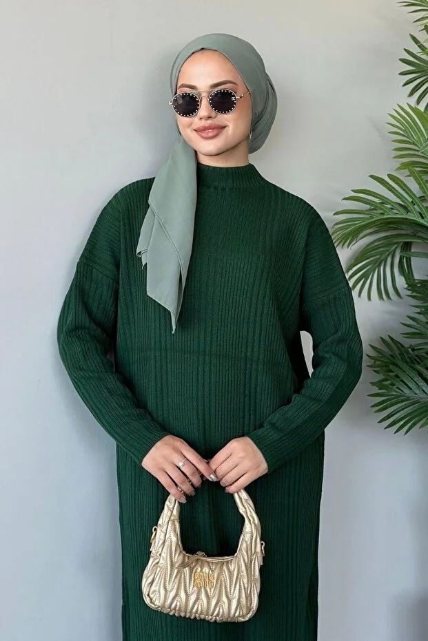 فستان منسوج مضلع من Şule Giyim باللون الأخضر