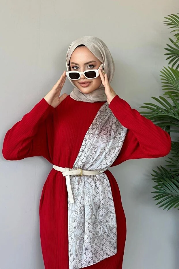 0 Review Of Product فستان منسوج من قماش كوردروي من Şule Giyim باللون العنابي